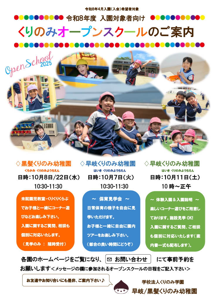 令和8年度入園対象者向け オープンスクールのご案内になります。